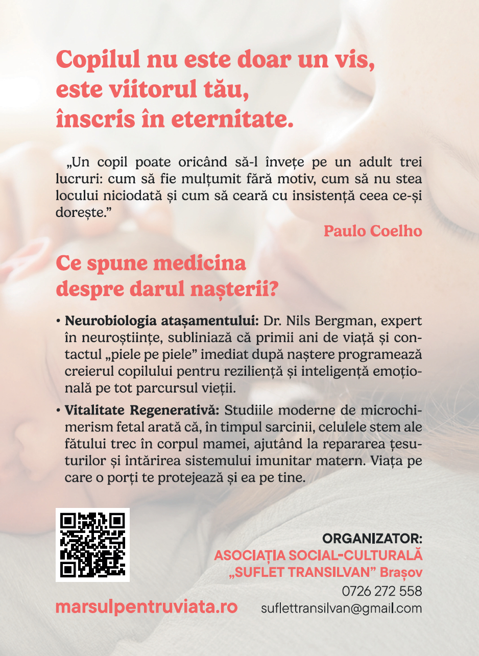 Vino alături de noi, spune DA vieții! Fiecare pas contează, fiecare voce se aude! Împreună, alegem speranța, iubirea și demnitatea fiecărei vieți!